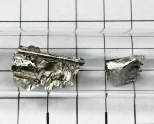 Terbium displays a silvery-gray metallic luster typical of rare earth metals, with certain ductility.